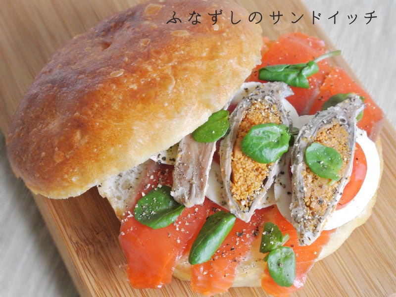 イタリアパン「フォカッチャ」が特におすすめです。鮒寿司薫製、チーズ(熟成系のコンテチーズ、ブルーチーズ、レッドチェダーチーズなどは特に相性良好。モッツアレラチーズは少し水分を吸い取ってからご利用ください)、スライストマト、スモークサーモン、ディルなどのピクルスなどをパンの上に乗せ、バジルやパクチーなどの香草、オリーブオイル、塩コショウなどで味を整えます。