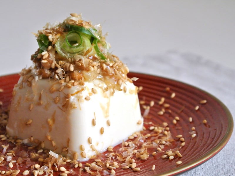 豆腐(絹)をお皿に盛り付けます。納豆に付属のタレや辛子を入れ、発酵ご飯を好きなだけ入れて混ぜます。それらを豆腐の上に盛り付け、お好みでゴマ、刻みネギ、かつお節などを振りかけて完成。ちょっと酸味の効いた味わいで、意外にも鮒寿司ご飯と納豆が合います。夏は冷奴、冬は温豆腐でお楽しみください。