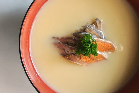 鮒寿司の頭、尾を刻んで、ダシに白味噌を濃いめに仕立て、刻み葱などの青み野菜を浮かべてお召し上がりください。西京味噌、赤味噌など、色々とお試し下さいませ。